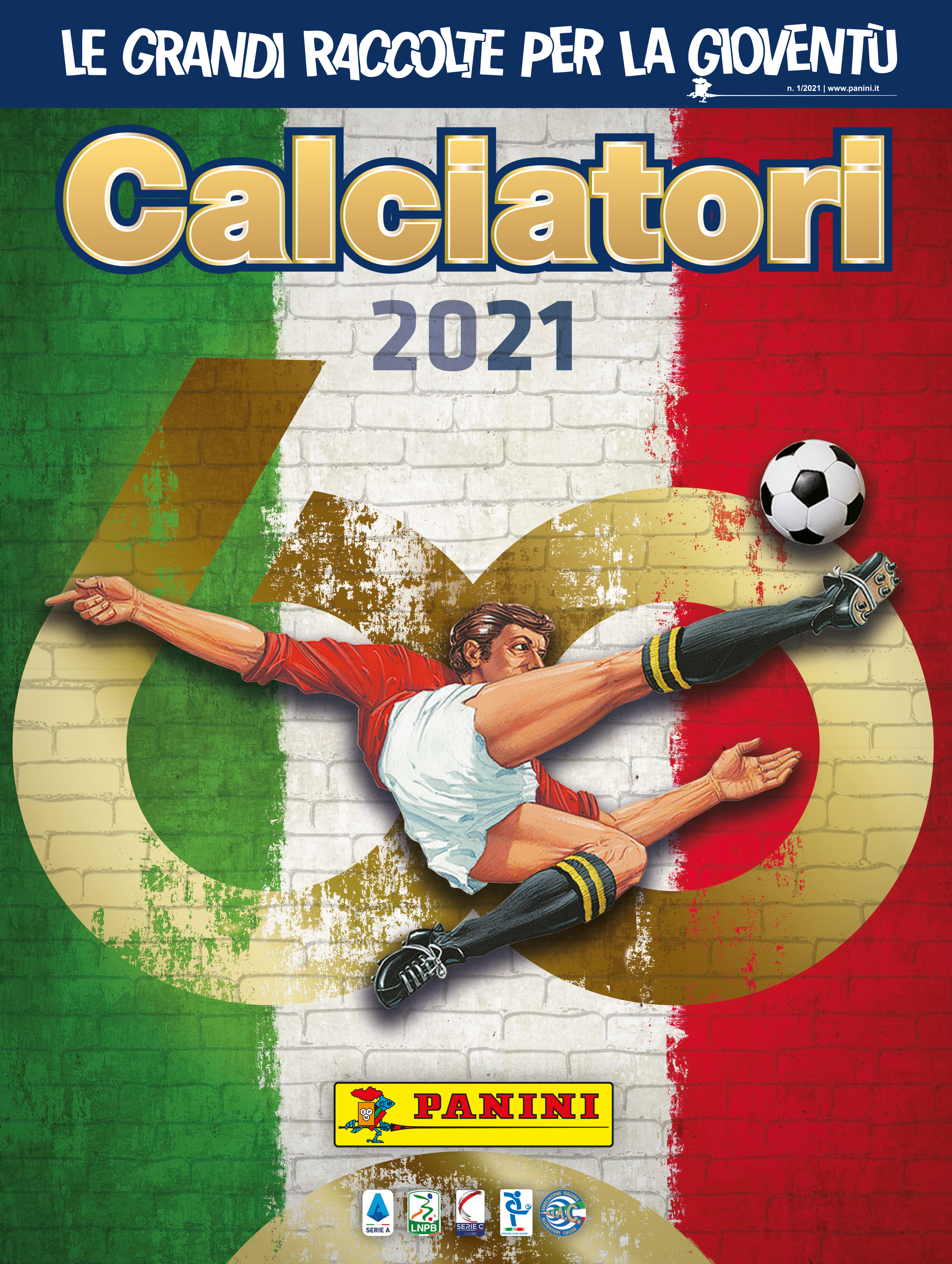 Nel 2021 il famoso album di Calciatori Panini festeggia il suo 60° anniversario. La copertina dell’album, realizzata con verniciatura ibrida e inserti metal, è caratterizzata dall’immagine iconica del famoso calciatore in rovesciata, storico simbolo delle collezioni “Calciatori”, con un grande numero 60 dorato su un muro tricolore.