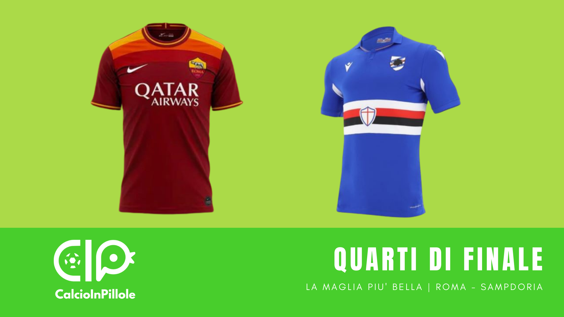 Ottavi di finale, quarti, semifinale e finale. Seguici su Twitter per scegliere insieme a noi la prima maglia della Serie A 2020/2021.