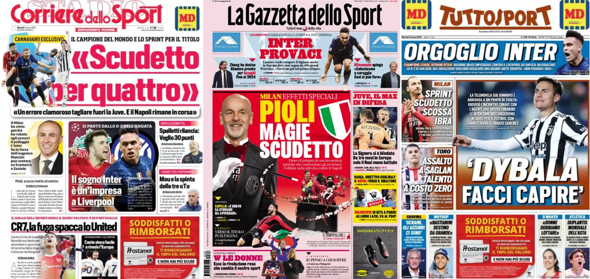 Buongiorno a tutti dalla redazione di CIP – Calcio in Pillole, che vi porta, come ogni mattina, in prima pagina! Alla scoperta delle aperture dei principali quotidiani sportivi in edicola oggi, martedì 8 marzo 2022. La prima pagina de La Gazzetta dello Sport La Gazzetta dello Sport apre con gli effetti speciali del Milan: “Pioli, magie […]