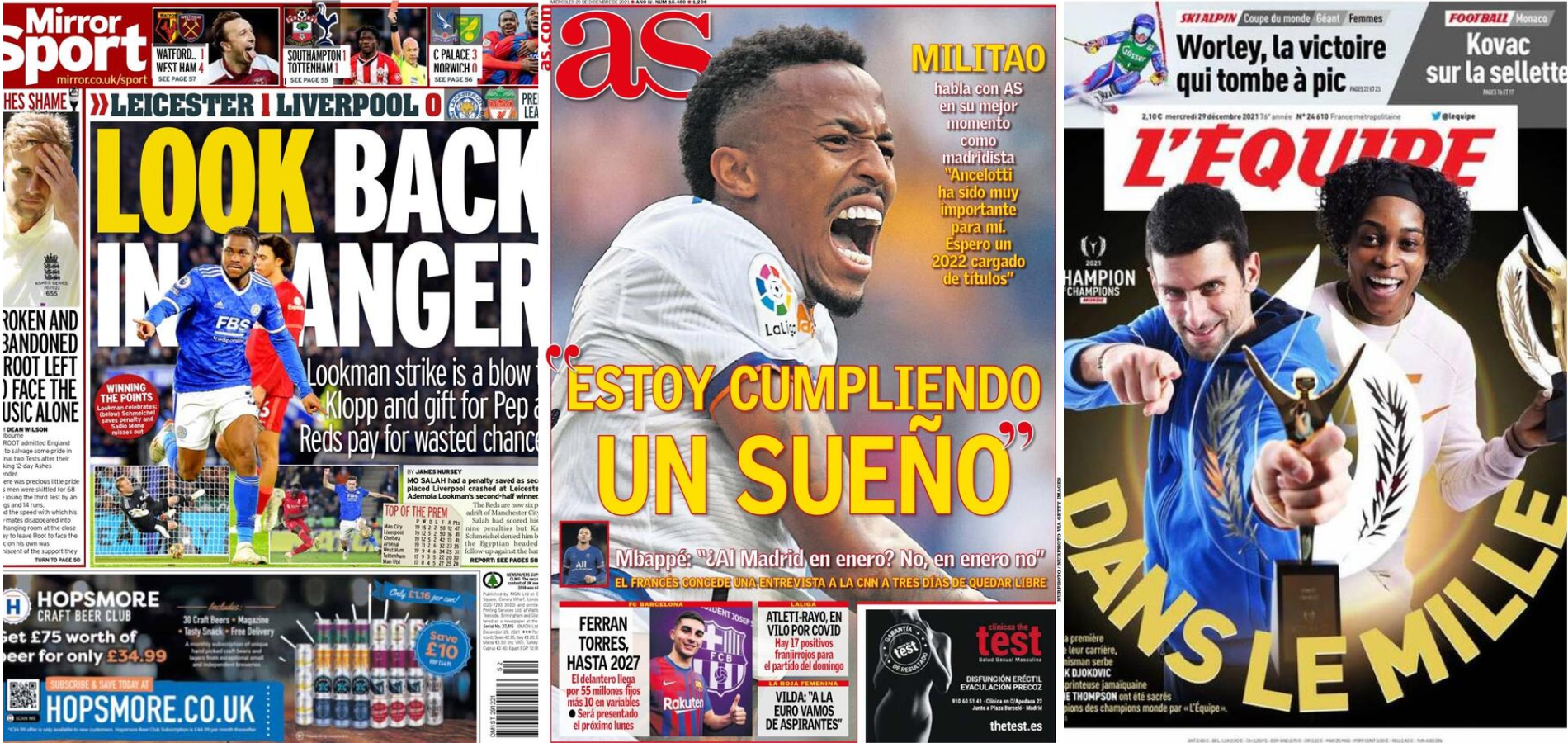 Buongiorno a tutti dalla redazione di CIP – Calcio in Pillole, che vi porta in prima pagina nei giornali sportivi esteri di oggi, mercoledì 29 dicembre 2021. 🇪🇸 La prima pagina di AS In Spagna, AS apre con l’intervista esclusiva a Eder Militao, difensore del Real Madrid. “‘Sto realizzando un sogno’“, “Militao parla nel suo periodo […]