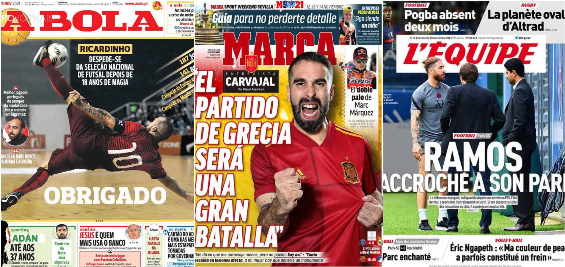 Buongiorno a tutti dalla redazione di CIP – Calcio in Pillole, che vi porta in prima pagina nei giornali sportivi esteri di oggi, mercoledì 10 novembre 2021. 🇪🇸 La prima pagina di Marca In Spagna, Marca apre con l’intervista a Dani Carvajal: “‘La partita contro la Grecia sarà una grande battaglia’“, “‘Mi dicono di pretendere meno […]