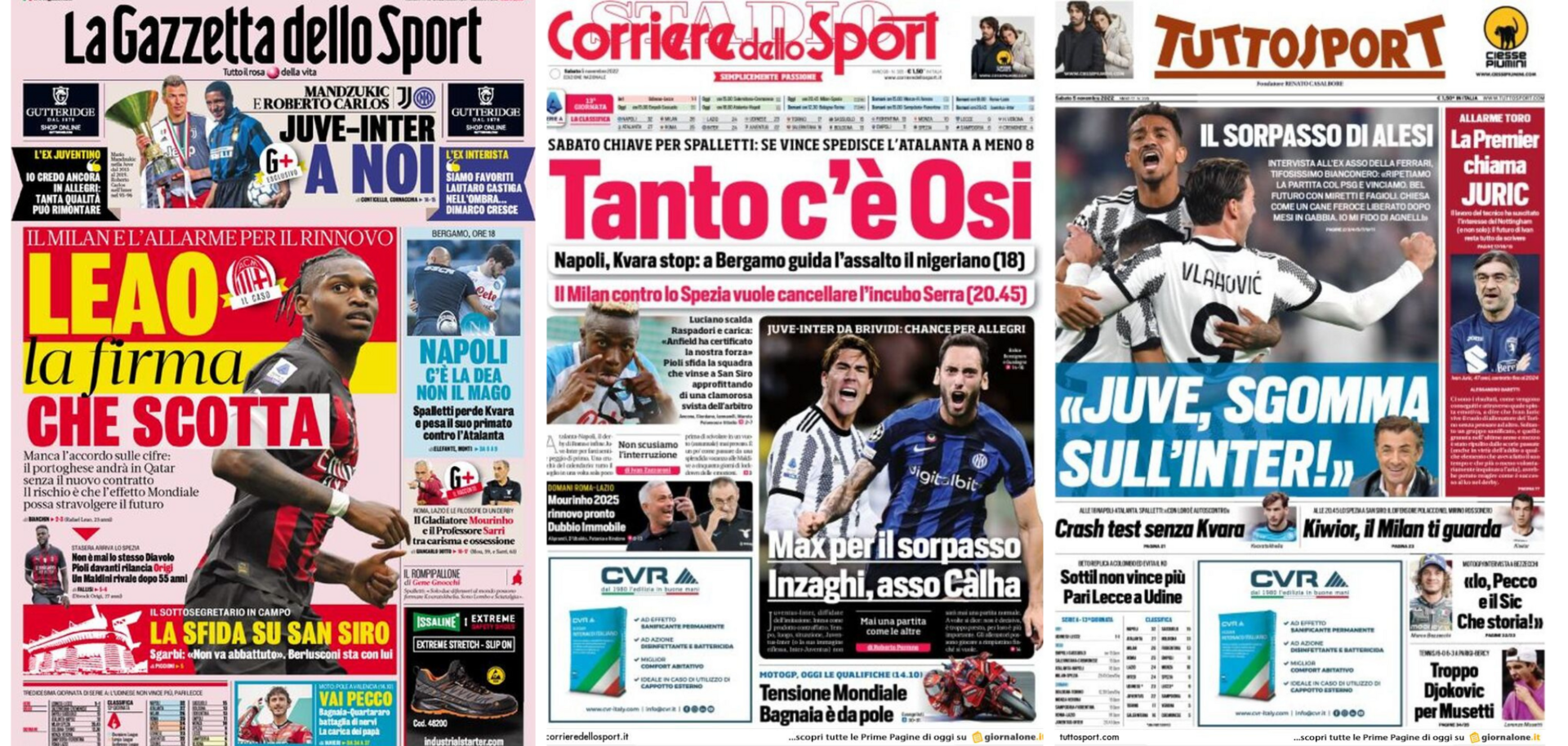 Buongiorno a tutti dalla redazione di CIP – Calcio in Pillole, che vi porta, come ogni mattina, in prima pagina! Alla scoperta delle aperture dei principali quotidiani sportivi in edicola oggi, Sabato 5 Novembre 2022. La prima pagina de La Gazzetta dello Sport La Gazzetta dello Sport apre sul rinnovo dell’attaccante rossonero:“Leao la firma che scotta”, […]