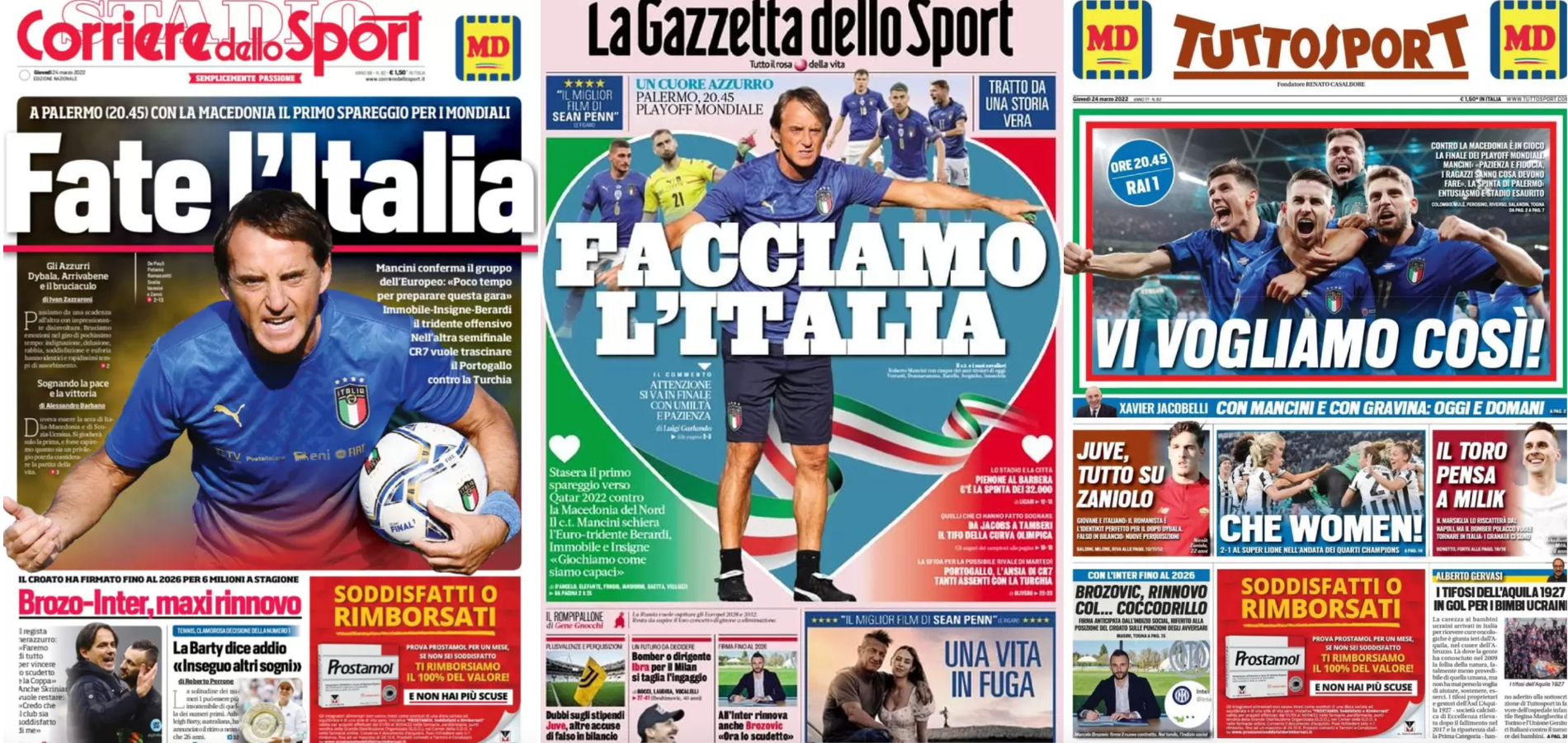 Buongiorno a tutti dalla redazione di CIP – Calcio in Pillole, che vi porta, come ogni mattina, in prima pagina! Alla scoperta delle aperture dei principali quotidiani sportivi in edicola oggi, giovedì 24 marzo 2022. La prima pagina de La Gazzetta dello Sport La Gazzetta dello Sport apre con il cuore azzurro: “Facciamo l’Italia“, “Palermo, 20:45: […]