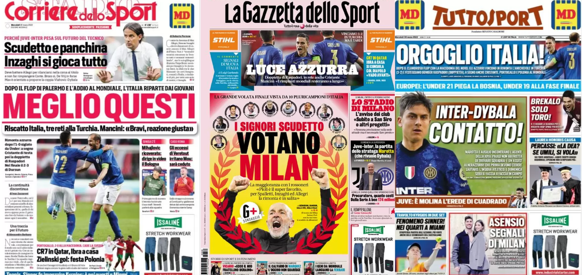 Buongiorno a tutti dalla redazione di CIP – Calcio in Pillole, che vi porta, come ogni mattina, in prima pagina! Alla scoperta delle aperture dei principali quotidiani sportivi in edicola oggi, mercoledì 30 marzo 2022. La prima pagina de La Gazzetta dello Sport La Gazzetta dello Sport apre con la grande volata finale vista da 10 […]