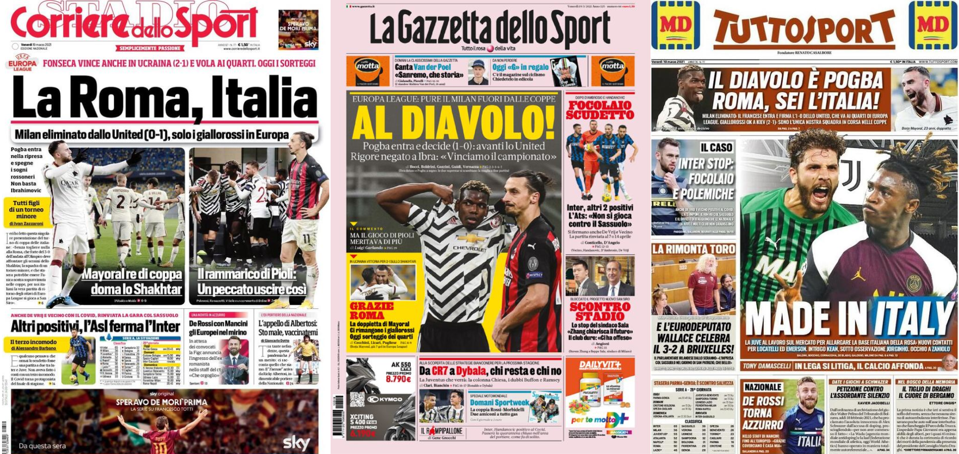 Buongiorno a tutti dalla redazione di CIP – Calcio in Pillole, che vi porta, come ogni mattina, in prima pagina! Alla scoperta delle aperture dei principali quotidiani sportivi in edicola oggi, venerdì 19 marzo 2021. La prima pagina de La Gazzetta dello Sport La Gazzetta dello Sport sottolinea l’eliminazione del Milan in Europa League. “Al Diavolo!“, “Europa […]