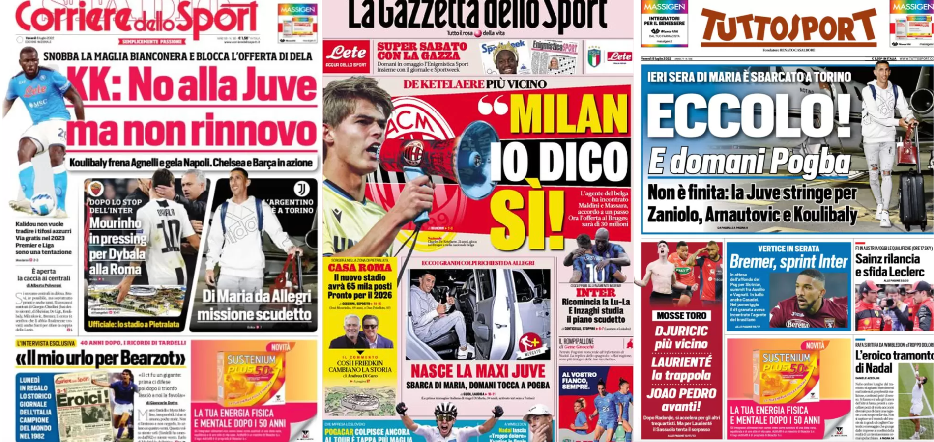 Buongiorno a tutti dalla redazione di CIP – Calcio in Pillole, che vi porta, come ogni mattina, in prima pagina! Alla scoperta delle aperture dei principali quotidiani sportivi in edicola oggi, venerdì 8 luglio 2022. La prima pagina de La Gazzetta dello Sport La Gazzetta dello Sport apre con De Ketelaere più vicino: “‘Milan, io dico sì’“, […]
