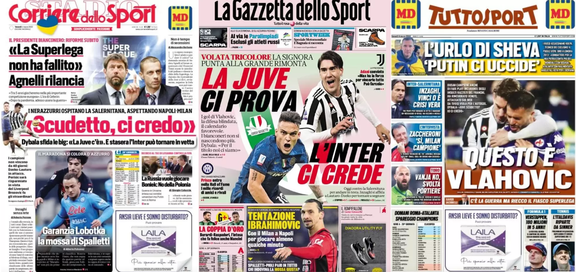 Buongiorno a tutti dalla redazione di CIP – Calcio in Pillole, che vi porta, come ogni mattina, in prima pagina! Alla scoperta delle aperture dei principali quotidiani sportivi in edicola oggi, venerdì 4 marzo 2022. La prima pagina de La Gazzetta dello Sport La Gazzetta dello Sport apre con la volata tricolore: “La Juve ci prova, […]